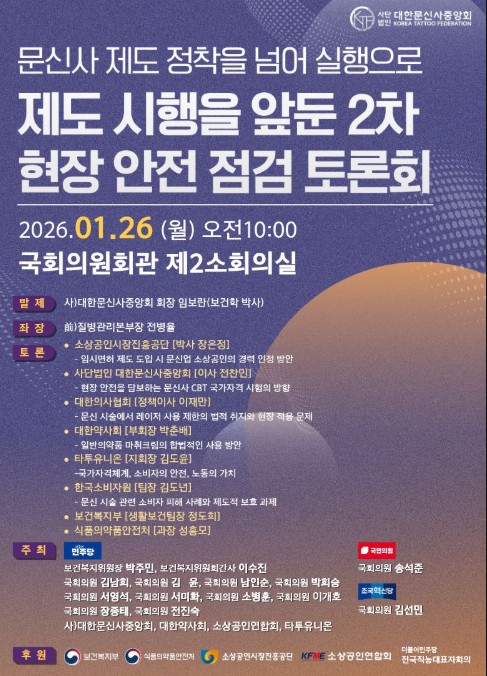 오는 26일 오전 10시, 국회의원회관 제2소회의실에서는 '문신사 제도 시행을 앞둔 2차 현장 안전 점검 토론회'가 열립니다.